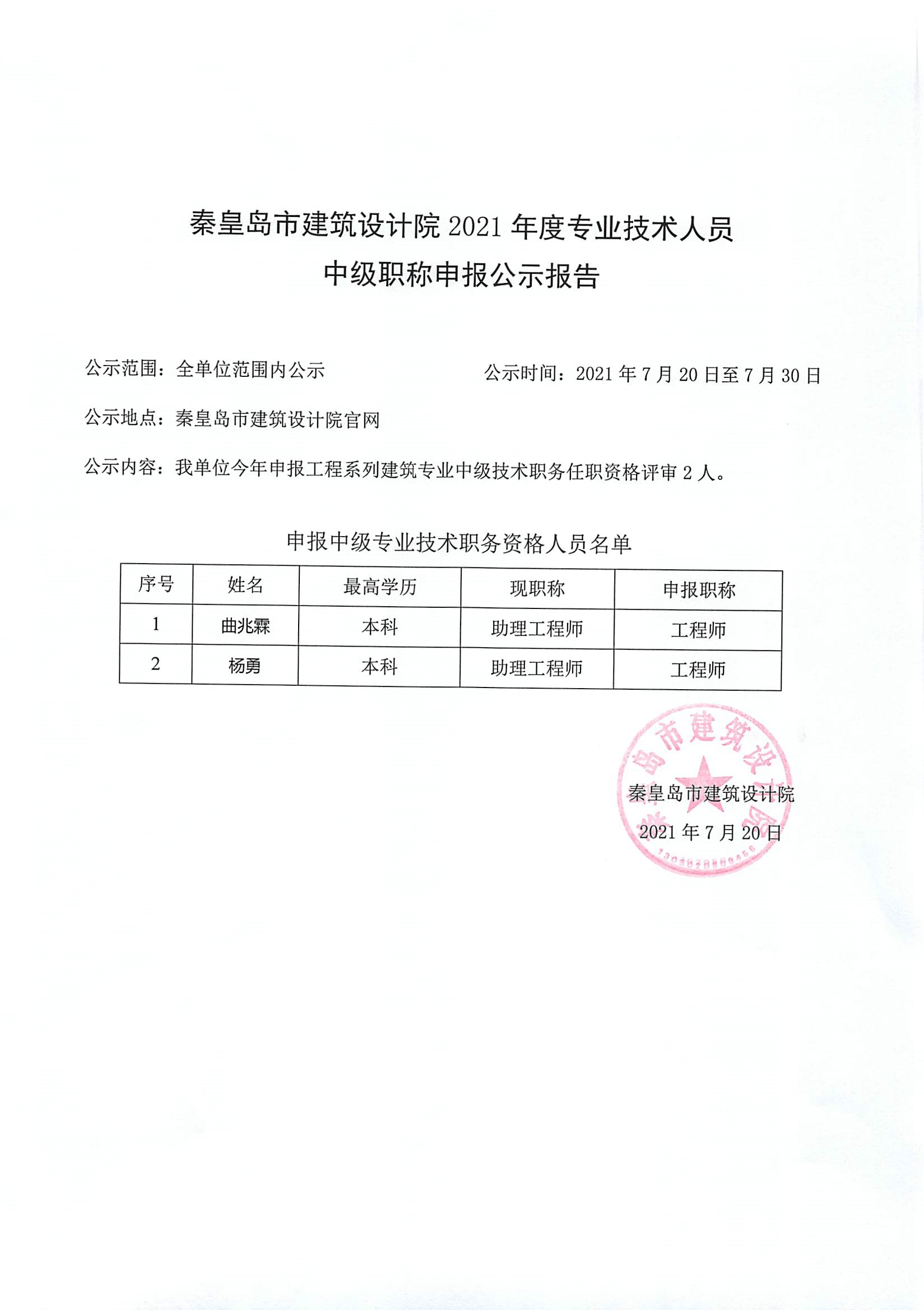 2021職稱公示